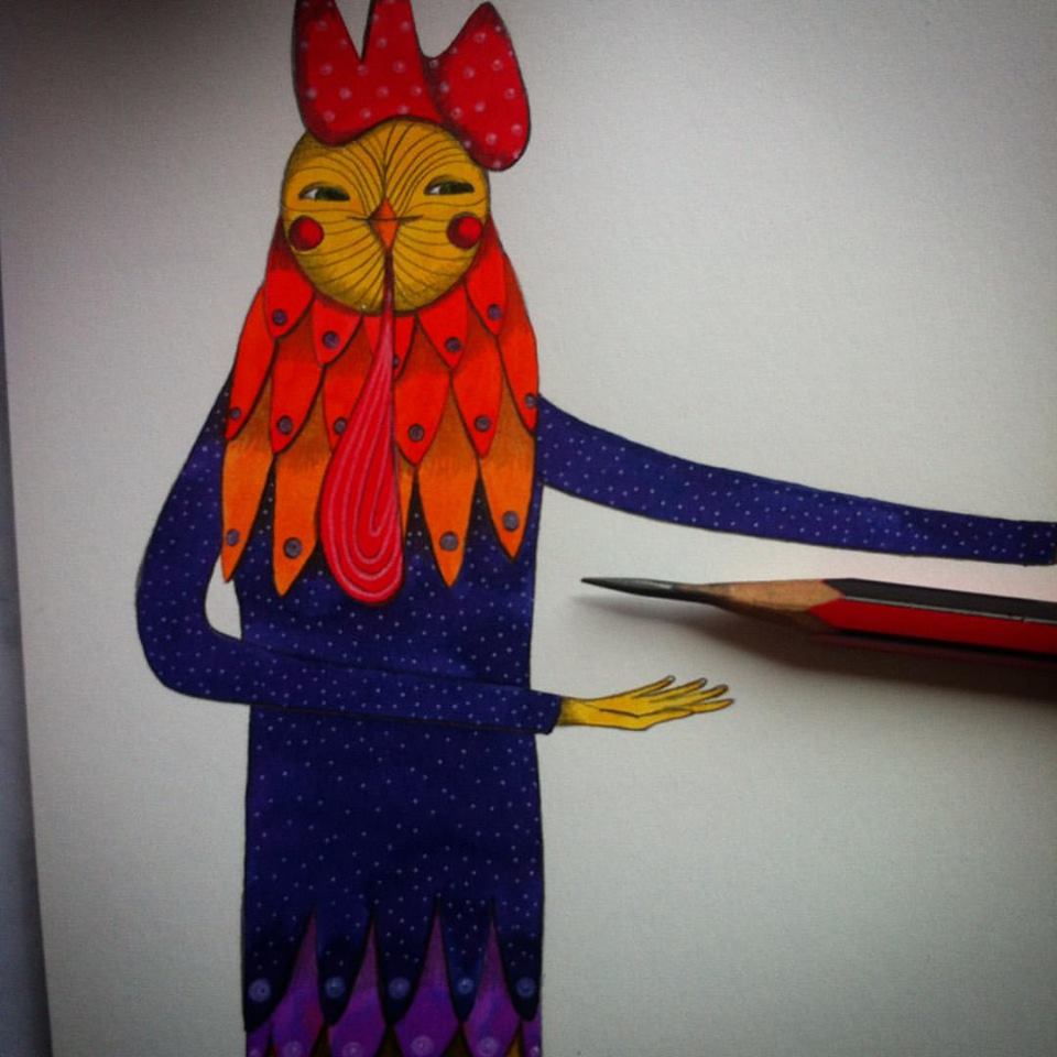 La gallina miró a sus amigos. Con suavidad ajustó sus torcidas gafas, intentó peinarse un poco y se sacudió el delantal. Con cuidado tendió su mantel más bonito sobre la mesa, alistó un colorido florero y con un alegre cacareo, llamó a sus tres pequeñitos: